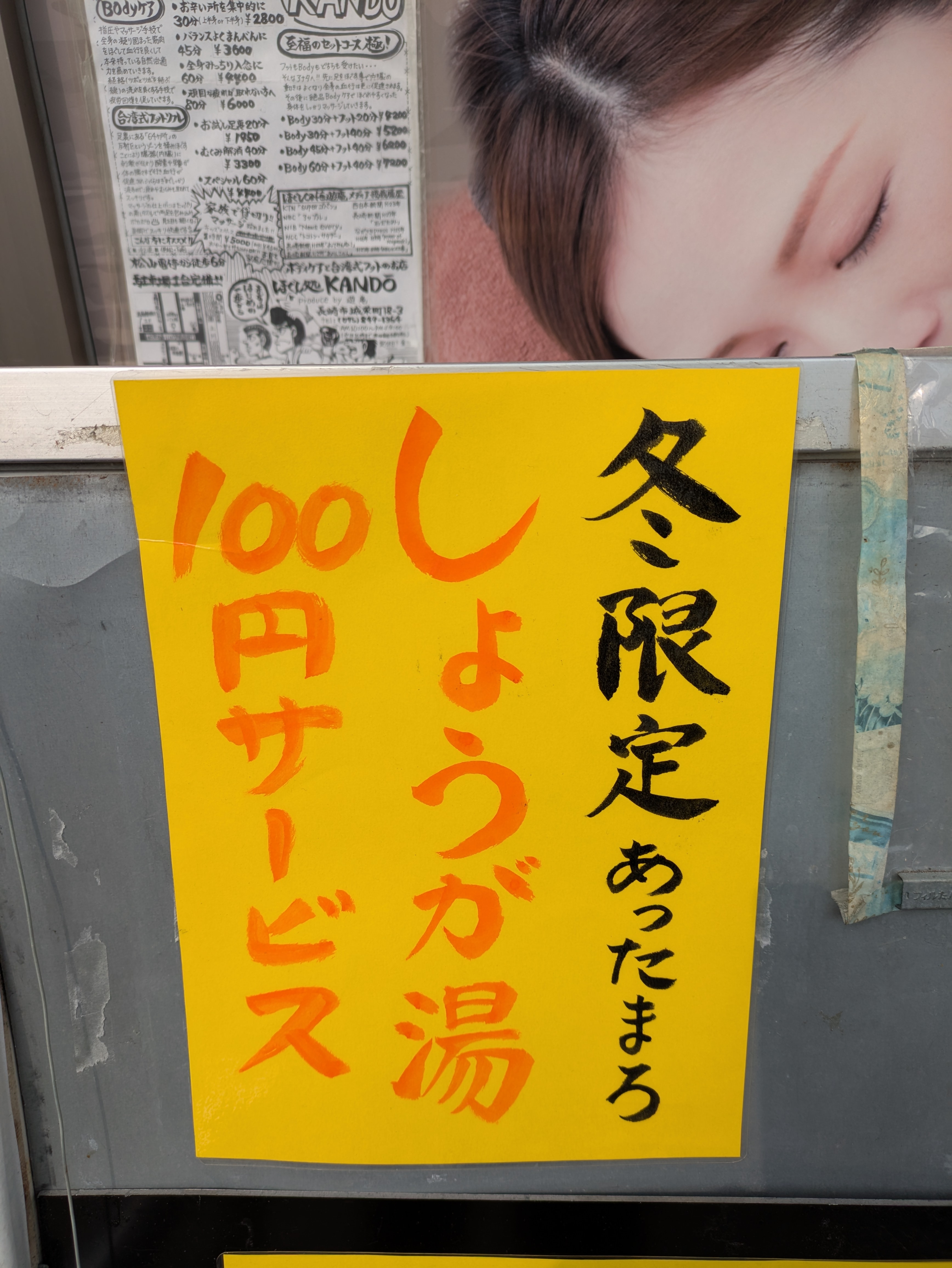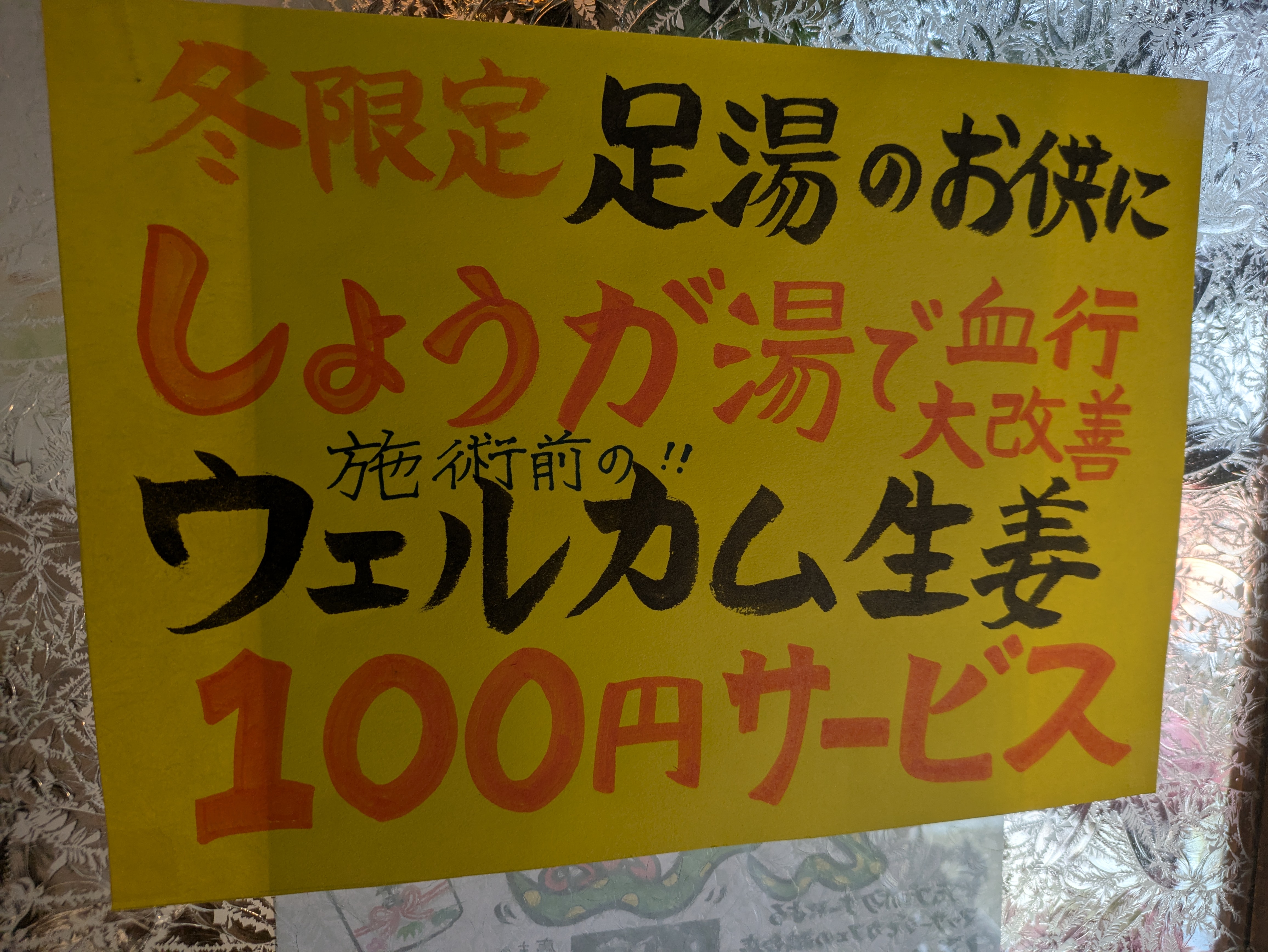 遊庵でおなじみの来間屋生姜糖本舗の【しょうが湯100円サービス】始めました!(^^)!