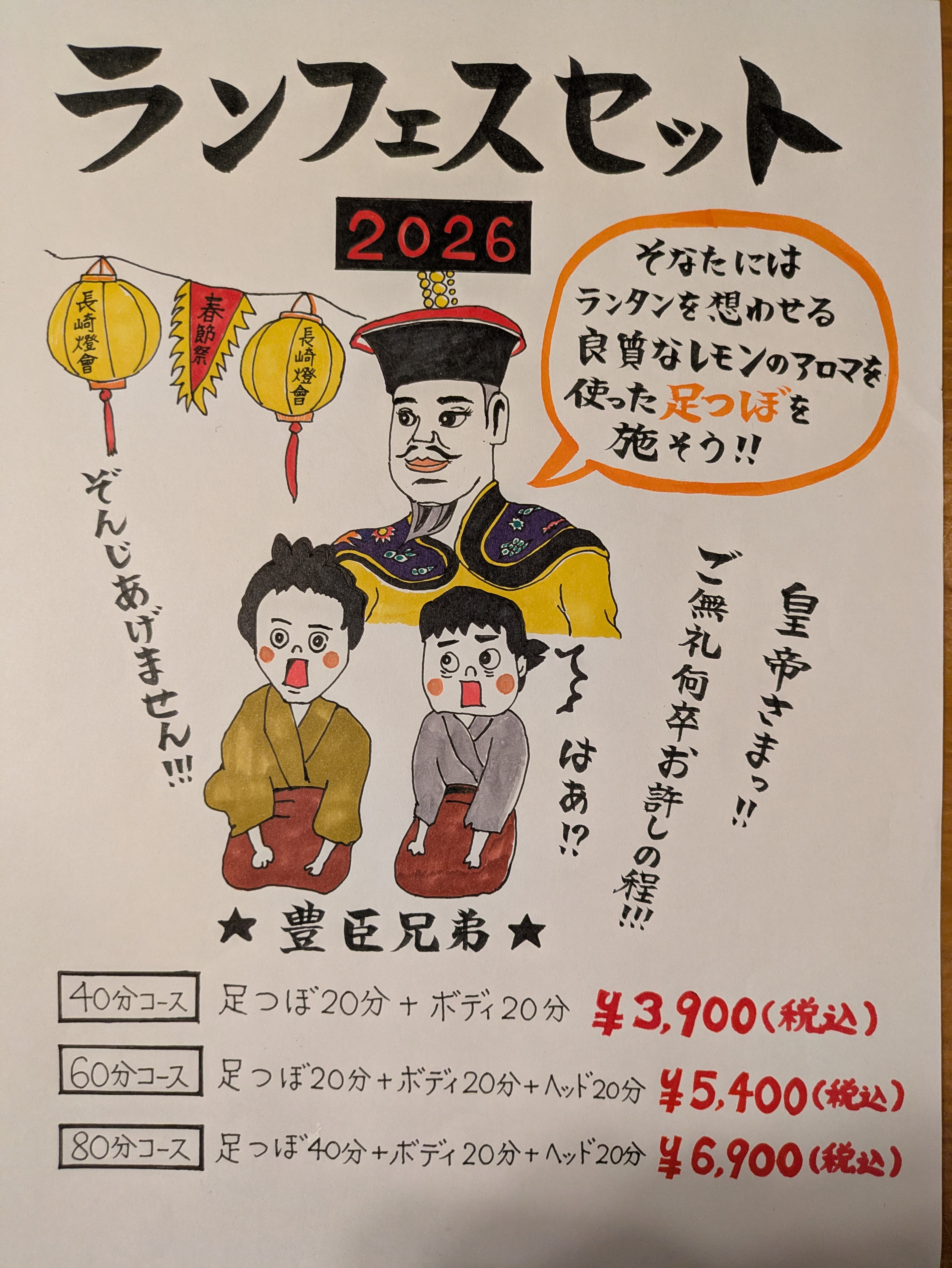 眼鏡橋周辺の中島川に妖艶と輝く黄色いランタンを想わせるレモンのアロマオイルが入ったフットクリームを使って施う遊庵の台湾式足つぼを中心としたセットコースでスッキリ癒されて帰ってくださいね(^_-)-☆