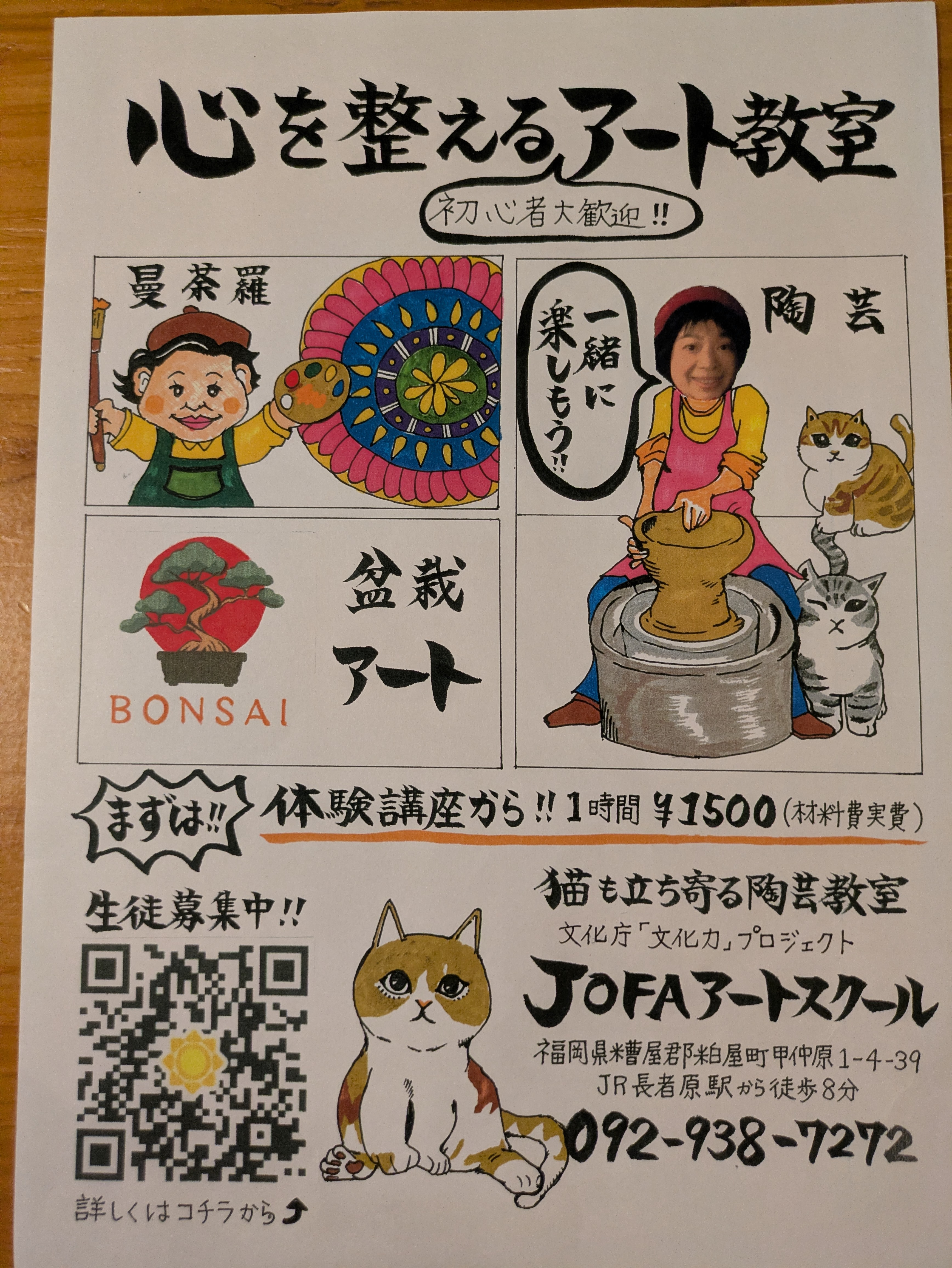 先日、遊庵がオープン1年目~2年目にご近所で陶芸教室をされていたMさんから今は福岡・糟屋郡で営業されている陶芸教室の手描きチラシ作成の依頼があったので作らせて頂きました(^o^)丿